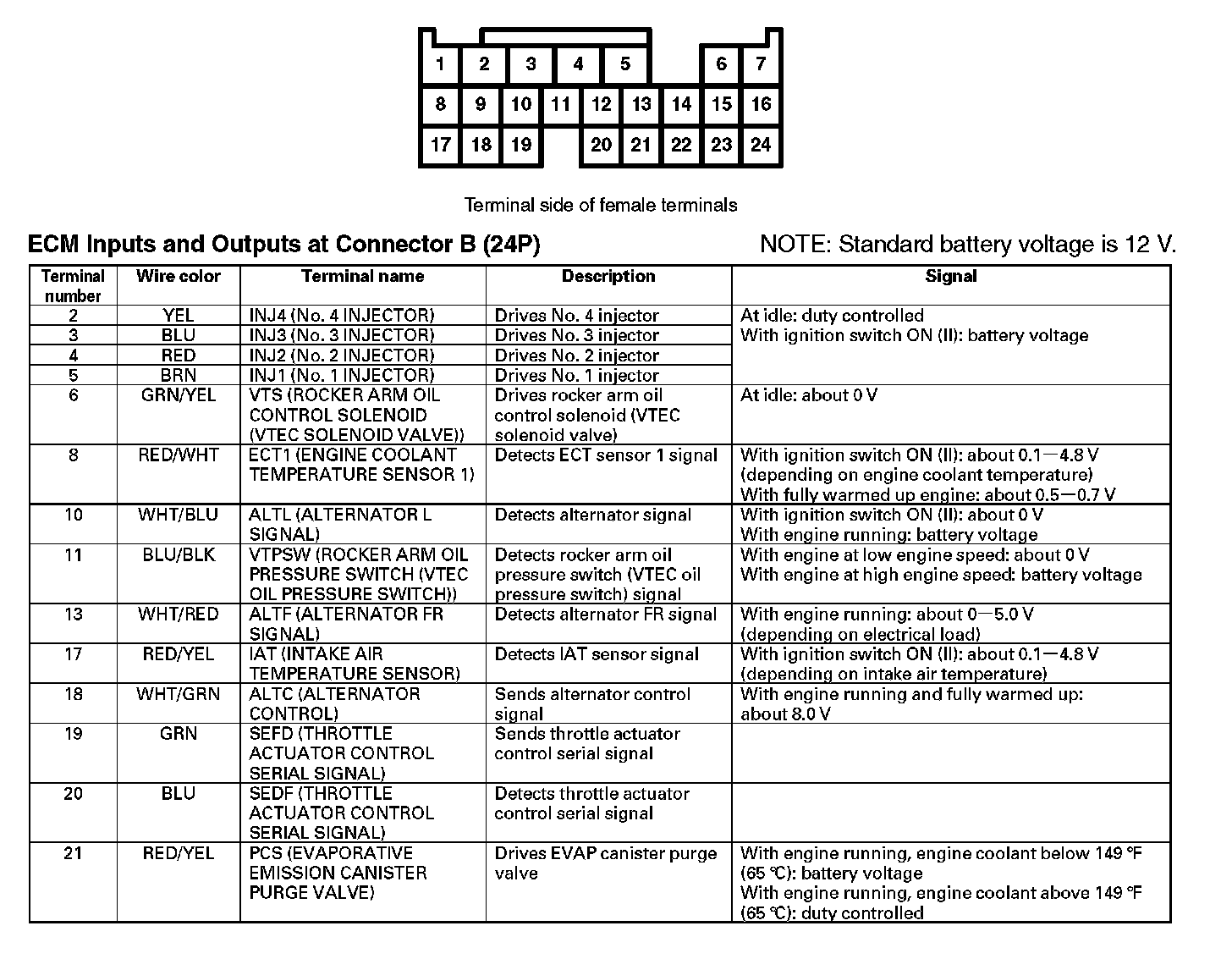 ECM Inputs And Outputs At Connector B (24P):
