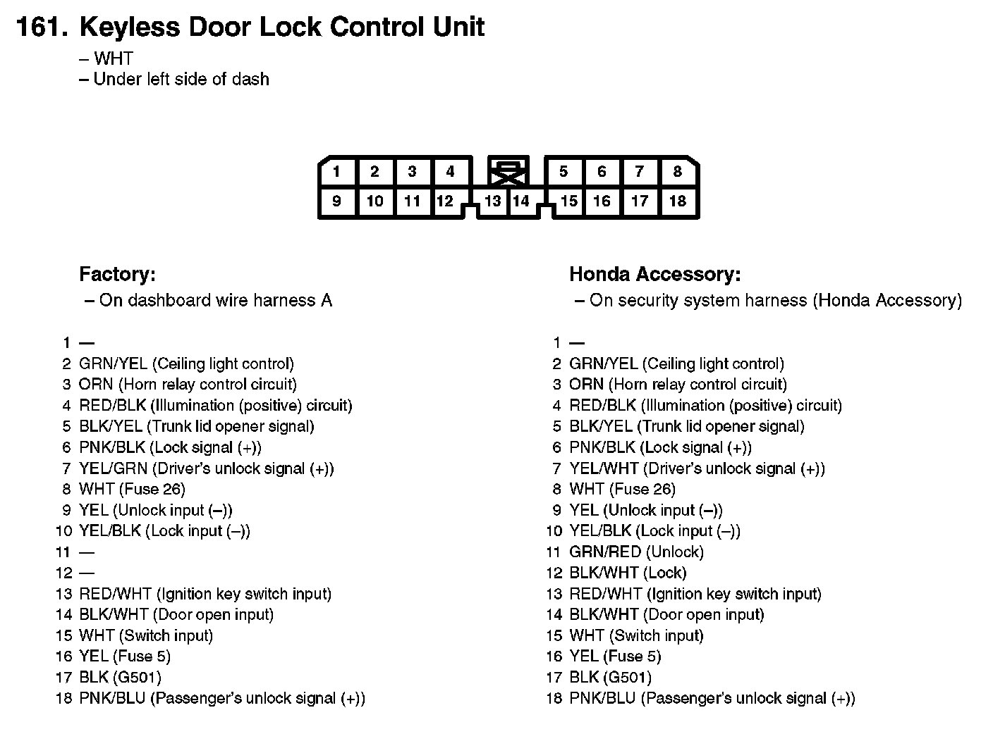161. Keyless Door Lock Control Unit: