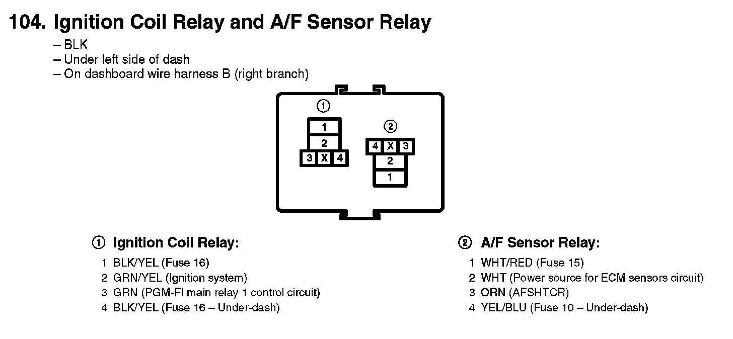 104. Ignition Coil Relay And A/F Sensor Relay: