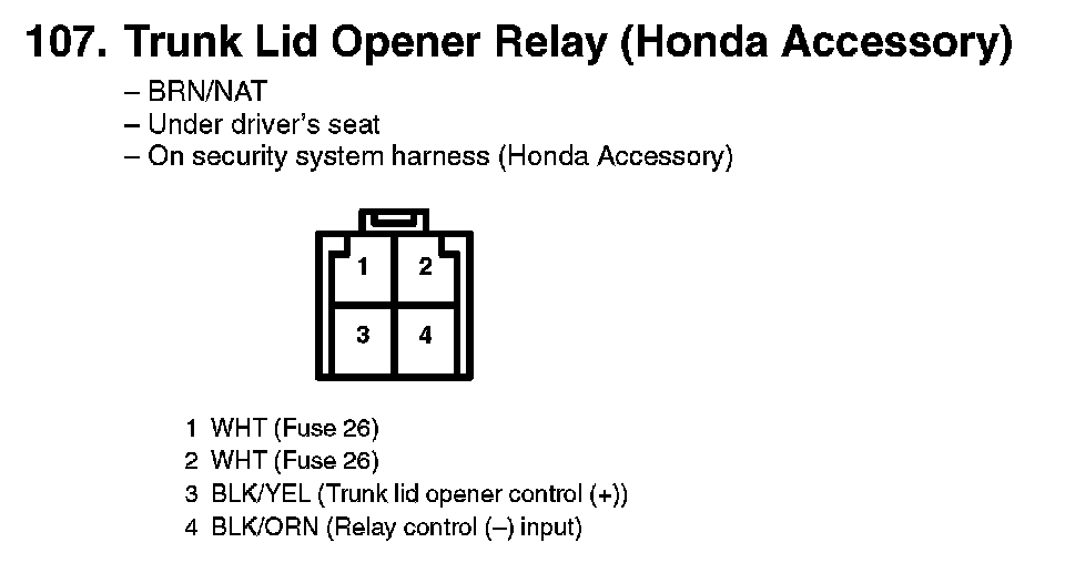 107. Trunk Lid Opener Relay (Honda Accessory):