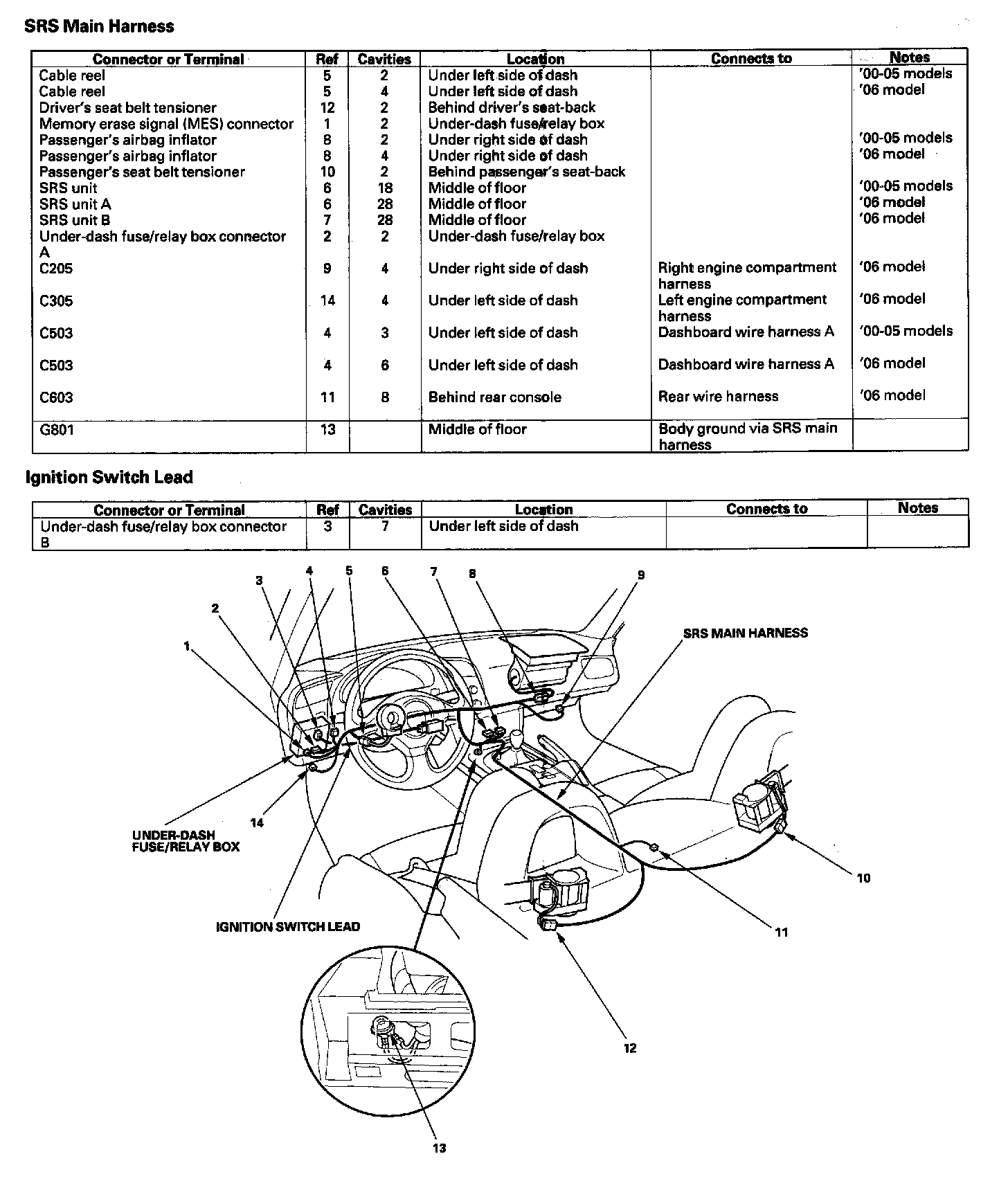 SRS Main Harness/Ignition Switch Lead: