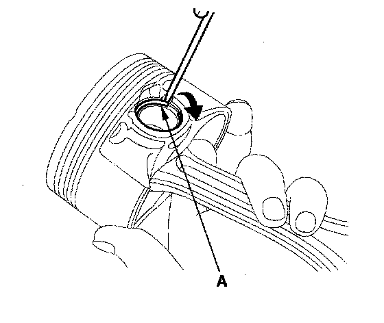 1. Install a new piston pin snap ring (A) only on one side.