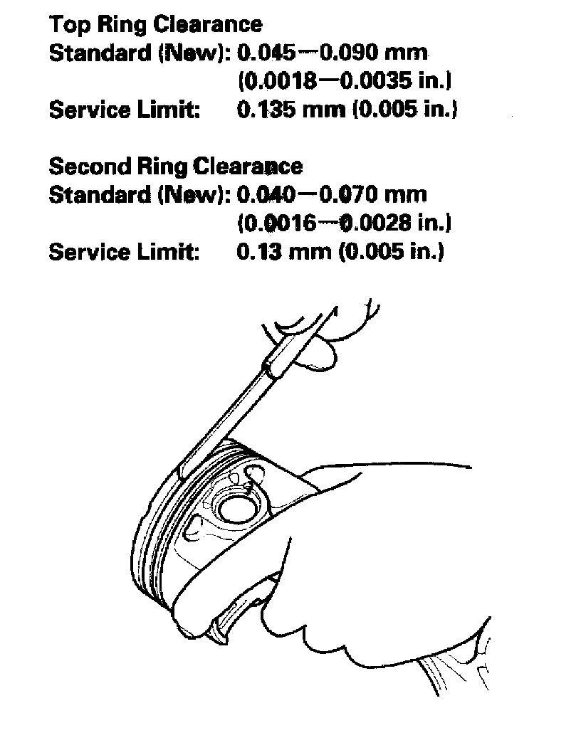 9. After installing a new set of rings, measure the ring-to-groove clearances.