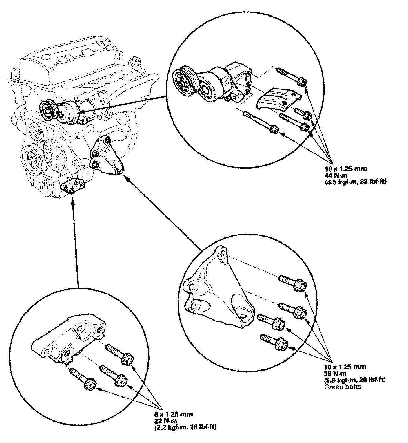 Engine Installation1. Install the accessory brackets, and tighten their bolts to the specified torques.