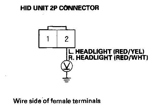 NO - Repair an open in the wire between the HID unit and body ground. If the wire is OK, check for poor ground at G201 (right)/G301 (left) ('00-03 models) or G510 ('04-06 models).