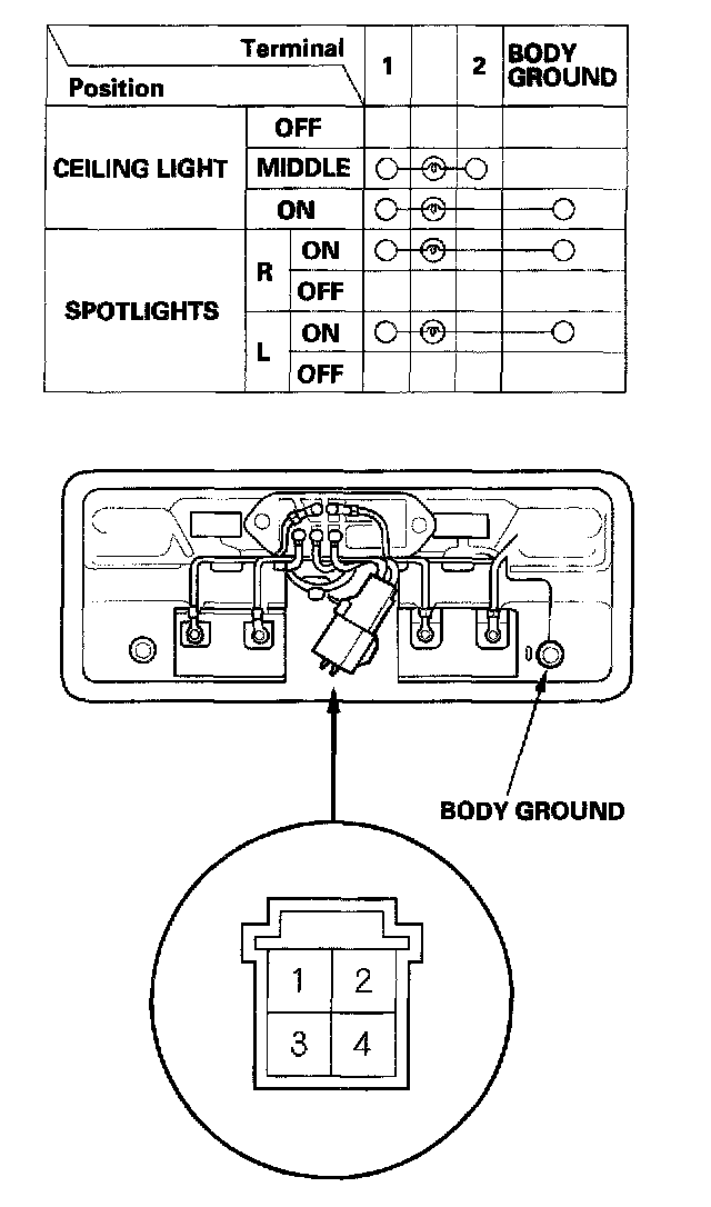 Ceiling Light/Spotlight Test1. Turn the ceiling spotlights switch OFF.