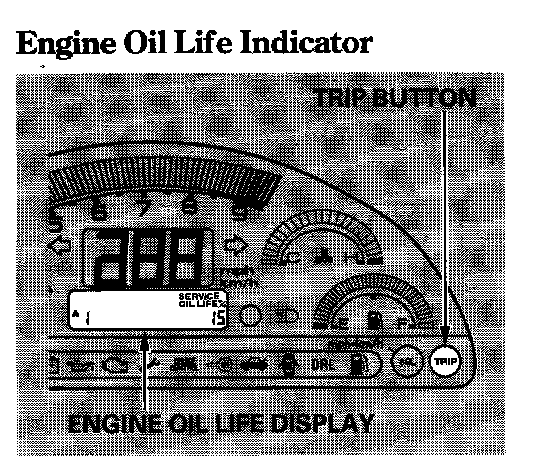 2. Press the Trip button until the engine oil life indicator is displayed.