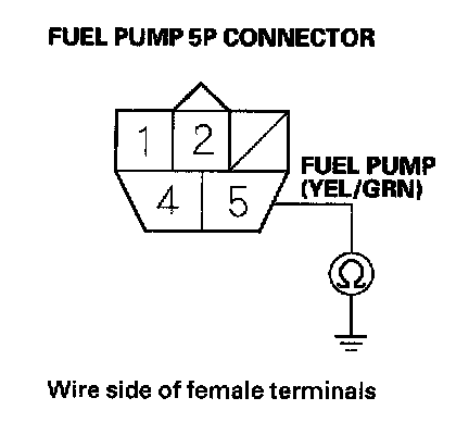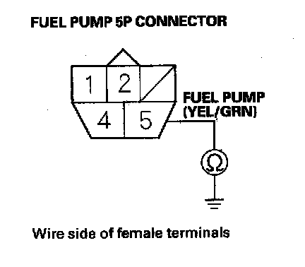 52. Check for continuity between fuel pump 5P connector terminal No. 5 and body ground.