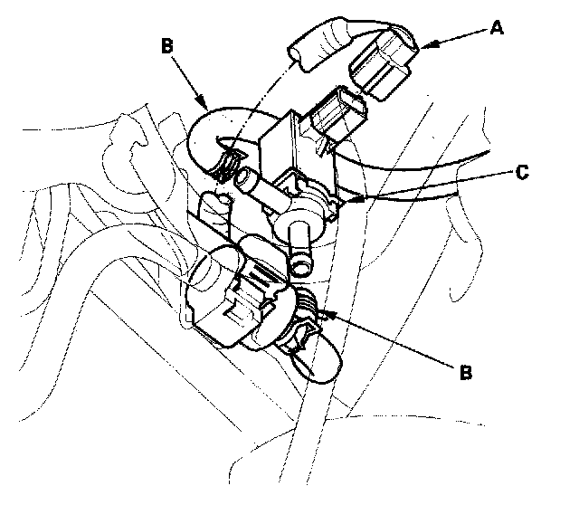 EVAP Canister Purge Valve Replacement1. Disconnect the EVAP canister purge valve 2P connector (A), and hose (B).