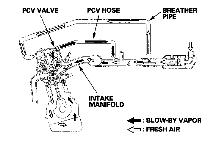 The PCV valve prevents blow-by gases from escaping into the atmosphere by venting them into the intake manifold.