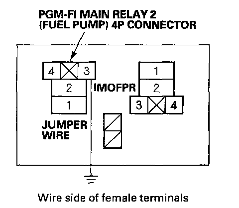 27. Connect PGM-FI main relay 2 (FUEL PUMP) 4P connector terminals No. 1 and No. 2 with a jumper wire.