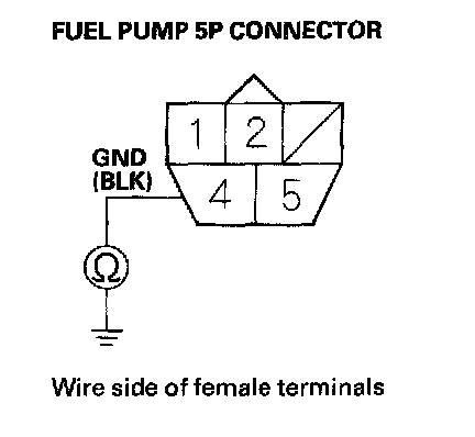 30. Check for continuity between fuel pump 5P connector terminal No. 4 and body ground.