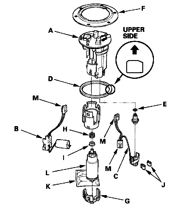 - Make sure the connection is secure and the suction filter (K) is firmly connected to the fuel pump(L).