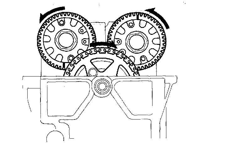 7. Rotate the crankshaft 180° clockwise (camshaft gears turn 90°).