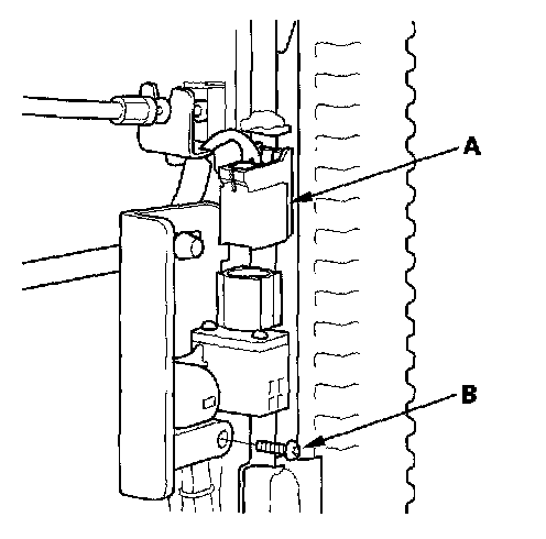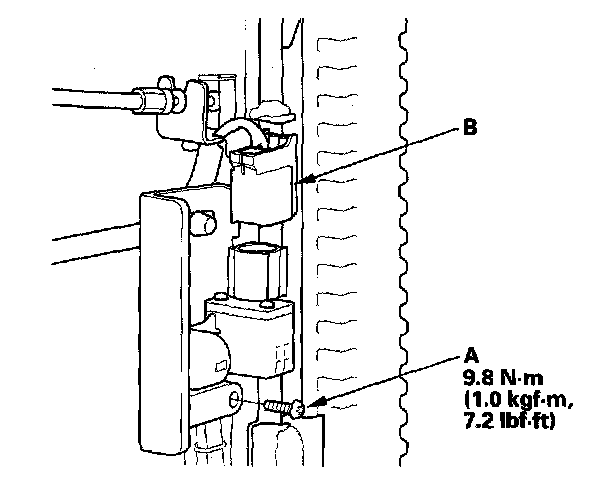 1. Install the new driver's seat position sensor with a Torx bolt (A), then connect the rear harness 2P connector to the driver's seat position sensor (B).