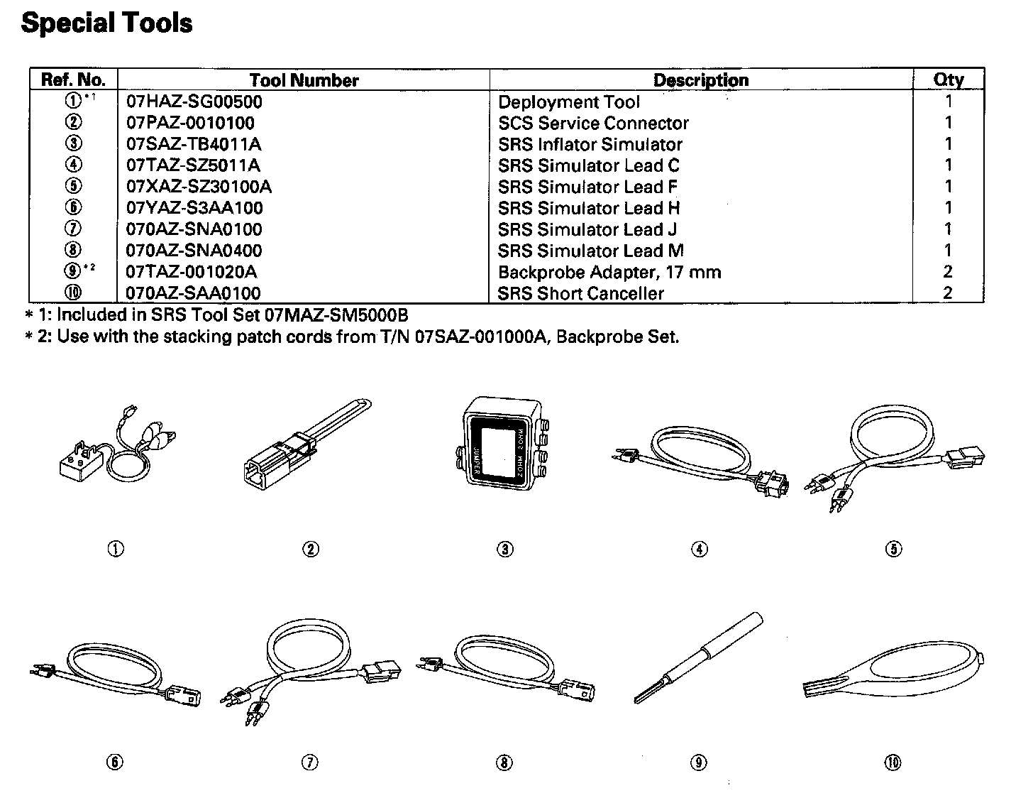 Restraints - Special Tools: