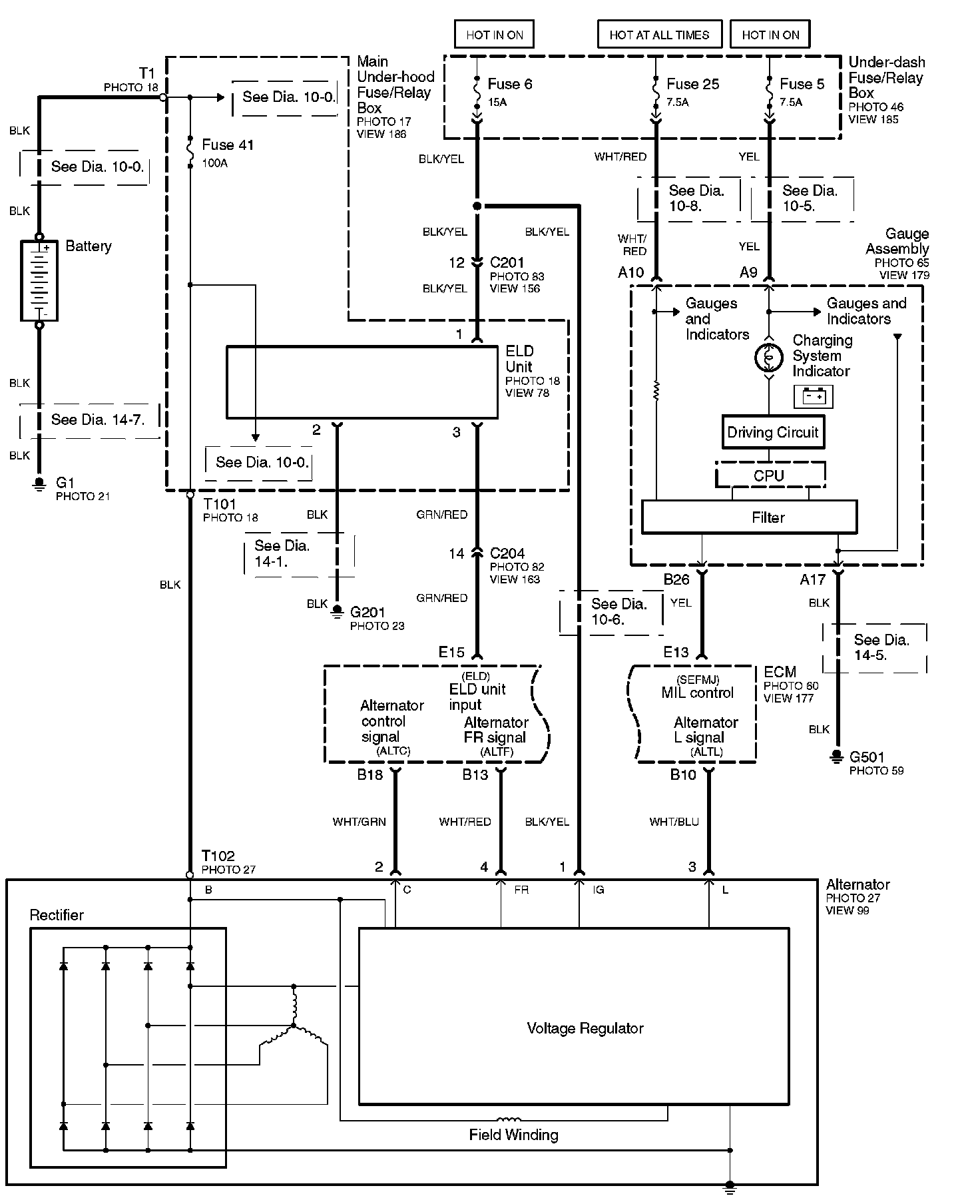Connector Views: Connector terminal views (references to VIEWS) referred to within these diagrams can be found at Connector Views by View Number. Connector Views By View Number