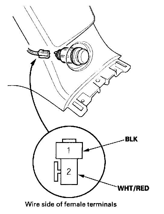 4. Turn the ignition switch ACC (I), and check for voltage between the No. 1 and No. 2 terminals.