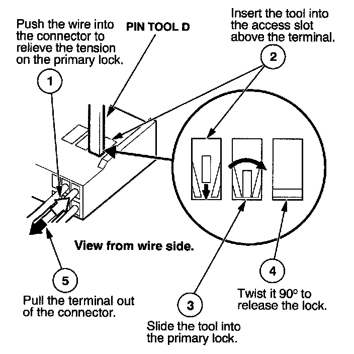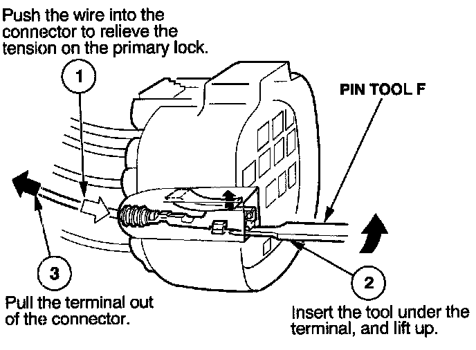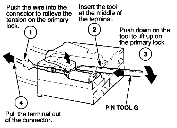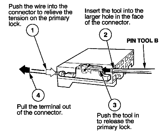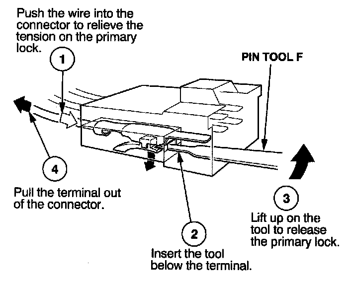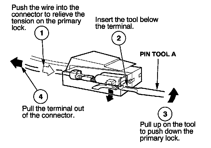 Before you begin, inspect the wire you are about to repair for damage and length. Make sure the wire will be long enough to make a terminal repair without stretching it when you reinstall the terminal in the connector. If the wire is too short, or if access to the connector is too restricted to make a terminal repair, you may need to install a pigtail terminal (a short length of wire with a factory-crimped terminal on it). Refer to HOW TO INSTALL PIGTAIL TERMINALS.