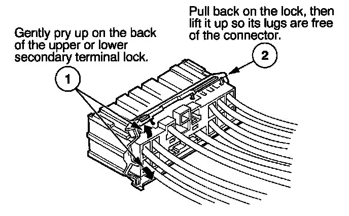- If it has a secondary terminal lock, go to Connectors With a Secondary Lock. A secondary lock, found on most connectors on some models, is an additional locking device on the connector housing as a backup for the primary lock on the terminal.