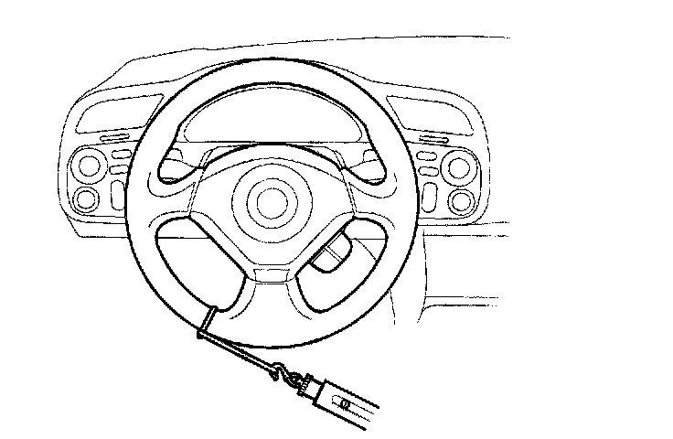 2. Attach a commercially available spring scale to the steering wheel. With the engine idling and the vehicle on a clean, dry floor, pull the scale as shown and read it as soon as the tires begin to turn.