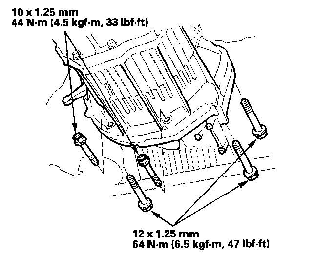 11. Install the five lower transmission mounting bolts.