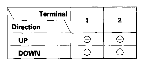 3. Check window motor operation by connecting power and ground according to the table. When the motor stops running, disconnect one lead immediately.