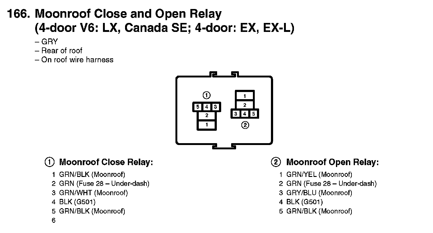 166. Moonroof Close And Open Relay (4-door V6: LX, Canada SE; 4-door: EX, EX-L):