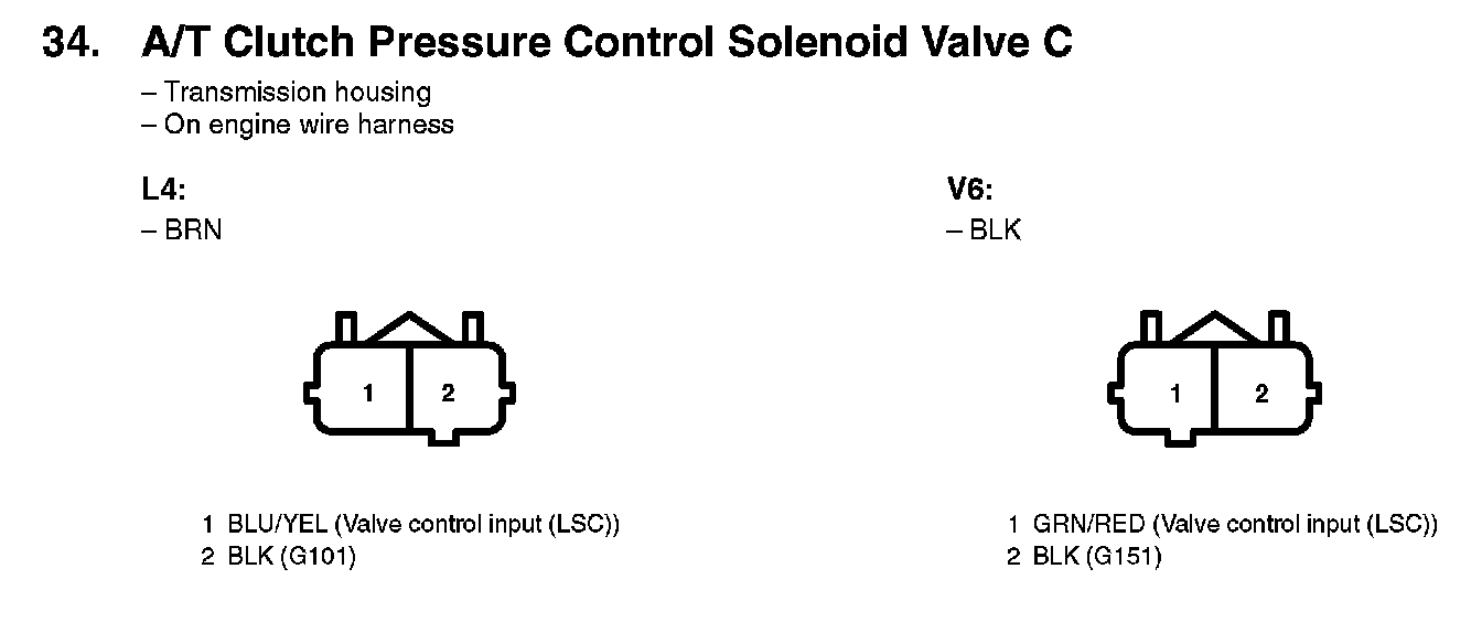34. A/T Clutch Pressure Control Solenoid Valve C: