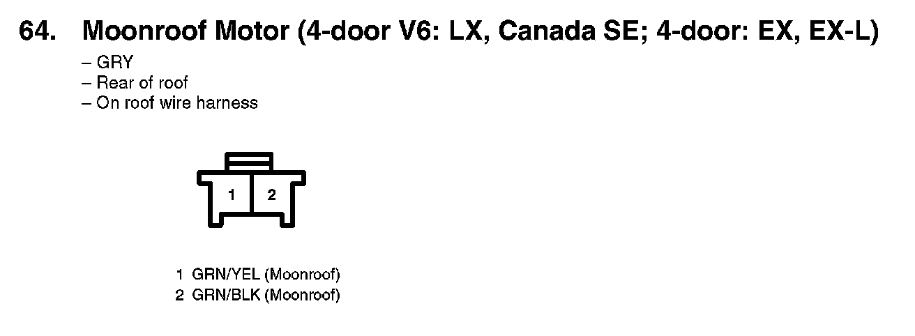 64. Moonroof Motor (4-door V6: LX, Canada SE; 4-door: EX, EX-L):