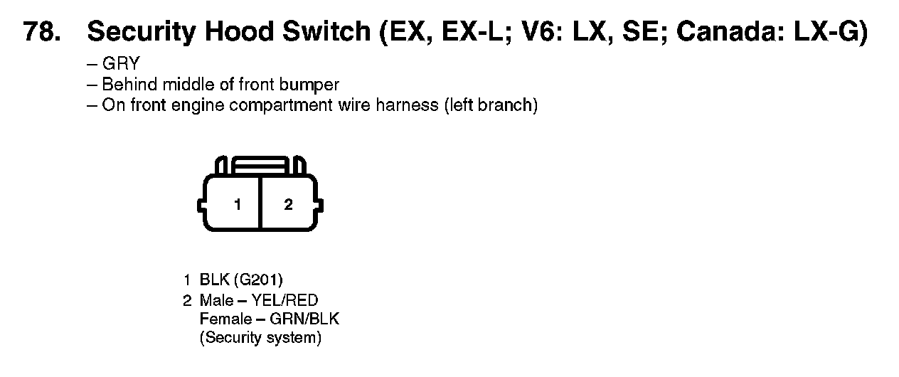78. Security Hood Switch (EX, EX-L; V6: LX, SE; Canada: LX-G):