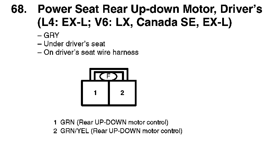 68. Power Seat Rear Up-down Motor, Driver's (L4: EX-L; V6: LX, Canada SE, EX-L):