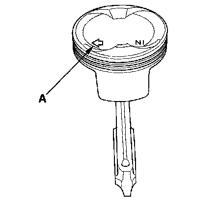 2. Position the mark (A) to face the cam chain side of the engine.