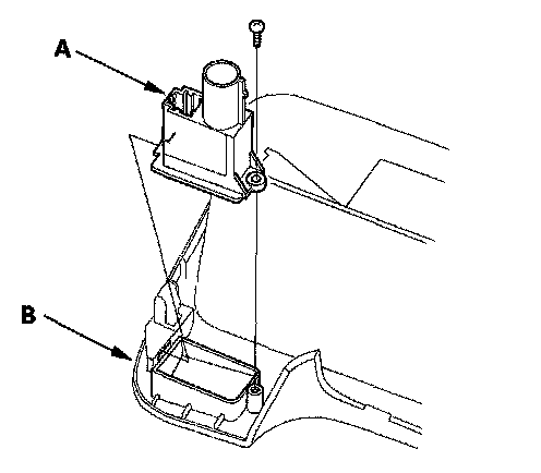 2. Remove the self-tapping screw and the in-car temperature sensor (A) from the instrument panel (B).