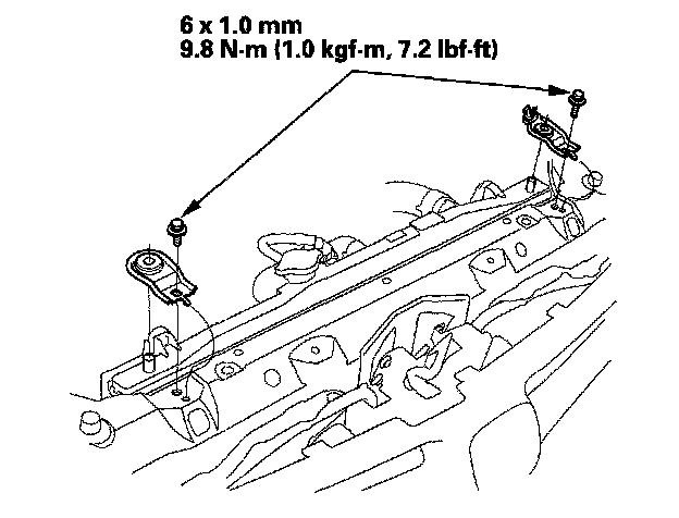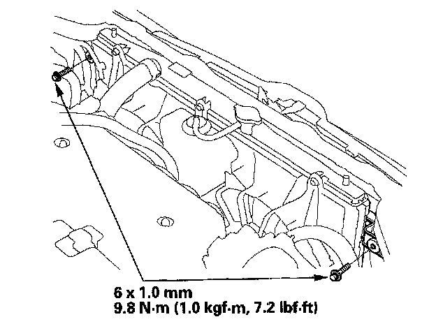 4. Remove the bolts and radiator upper mount brackets.