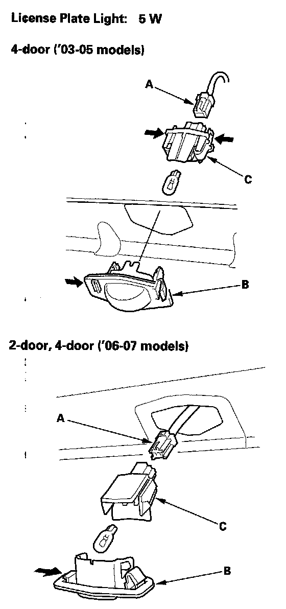 License Plate Light Replacement1. ('06-07 models): Remove the rear license trim.