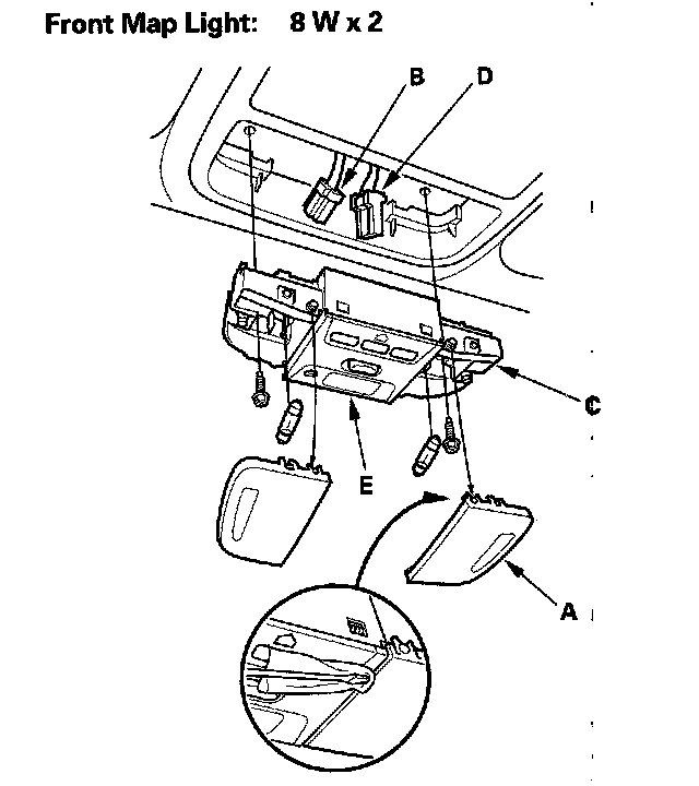 4. Disconnect the 8P connector (D) from the ambient light (E).