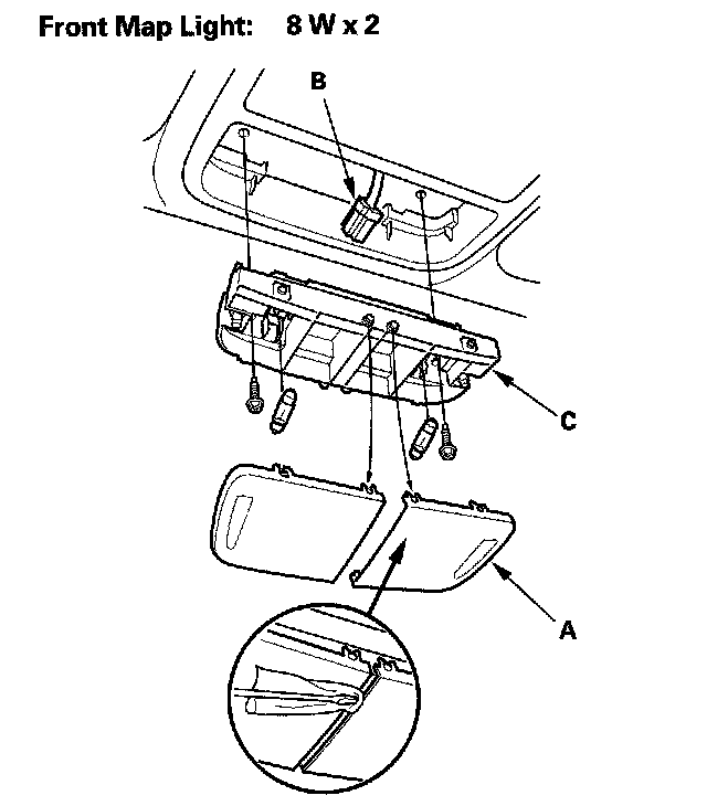 1. Carefully pry off the lens (A) with a small screwdriver.