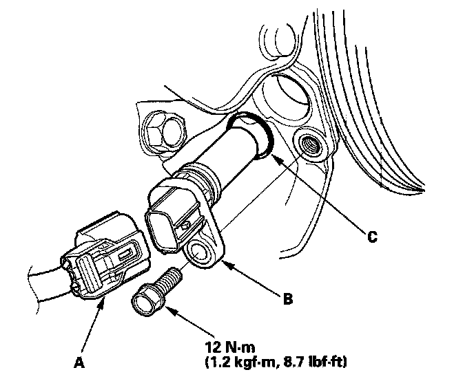 3. Install the parts in the reverse order of removal with a new O-ring (C).