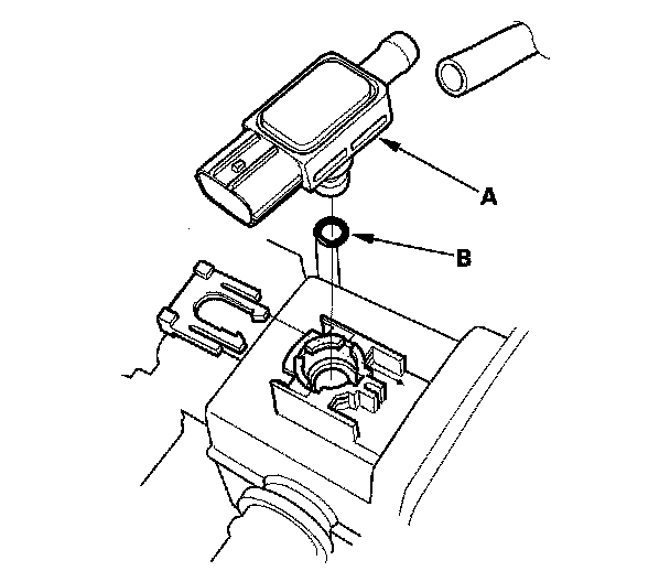 Install the parts in the reverse order of removal with a new O-ring (B).