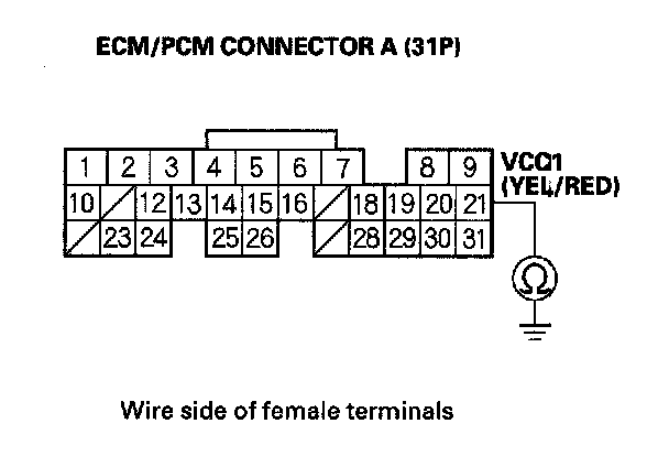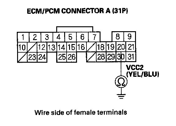 16. Check for continuity between ECM/PCM connector terminal E29 and body ground.