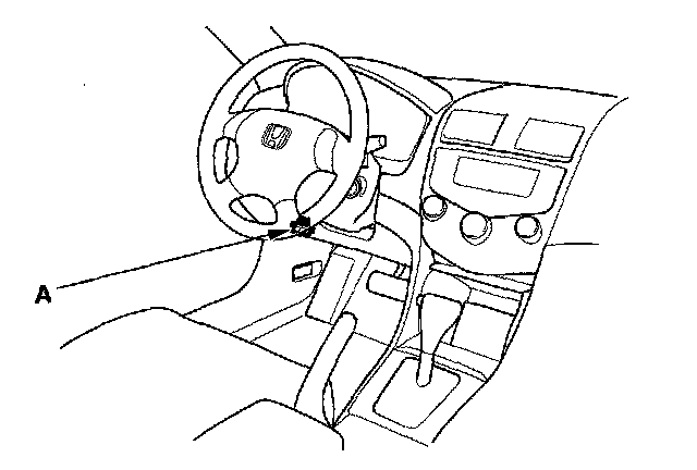 2. If the MIL stays on, connect the HDS to the data link connector (DLC) (A) located under the driver's side of the dashboard.