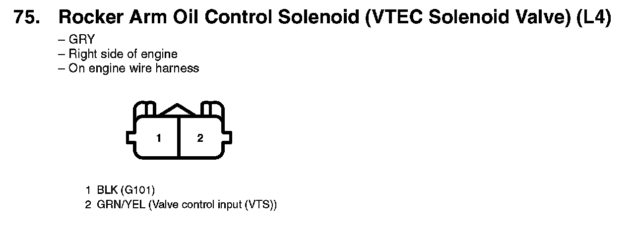 75. Rocker Arm Oil Control Solenoid (VTEC Solenoid Valve) (L4):