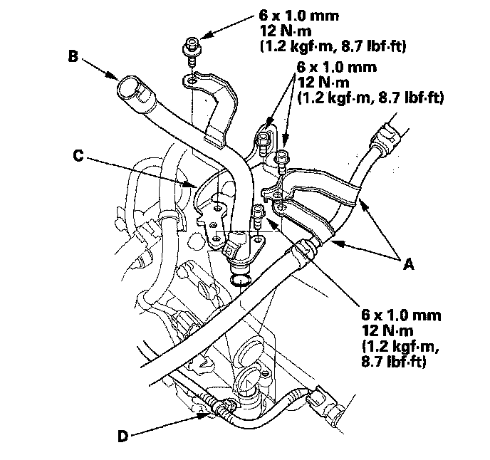 16. Remove the harness clamp (D), then remove the ATF dipstick guide pipe.