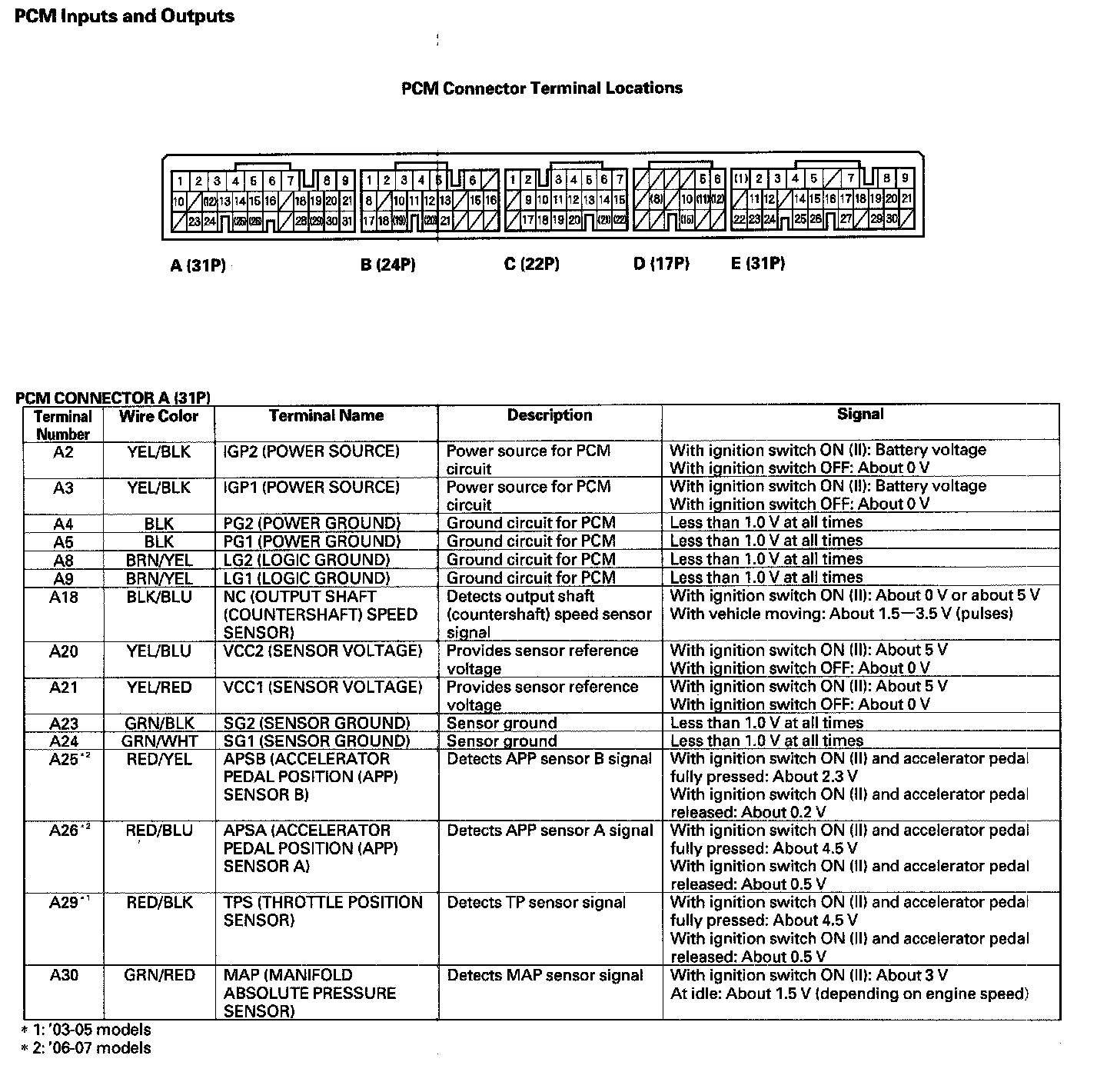Electronic Control System PCM Electrical Connections - 2003-2004 Models: