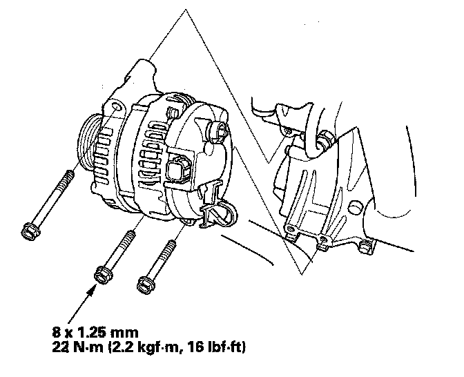 2. Install the BLK wire (A), then connect the alternator connector (B). Make sure the BLK wire crimped side of the ring terminal is facing out.