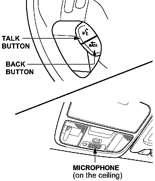 BACK - This does the same function as the CANCEL button. Press this button to return to the previous display. After the previous display appears, the system prompts you for a command, and then beeps. Press and release the TALK button to give the desired command.