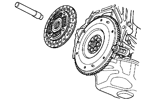 1. Temporarily install the clutch disc onto the splines of the transmission mainshaft. Make sure the clutch disc slides freely on the mainshaft.