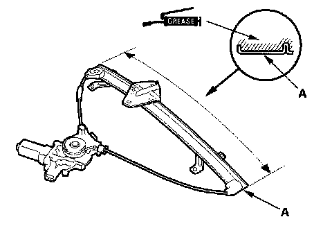 7. Apply multipurpose grease to all the sliding surfaces of the regulator (A) where shown.