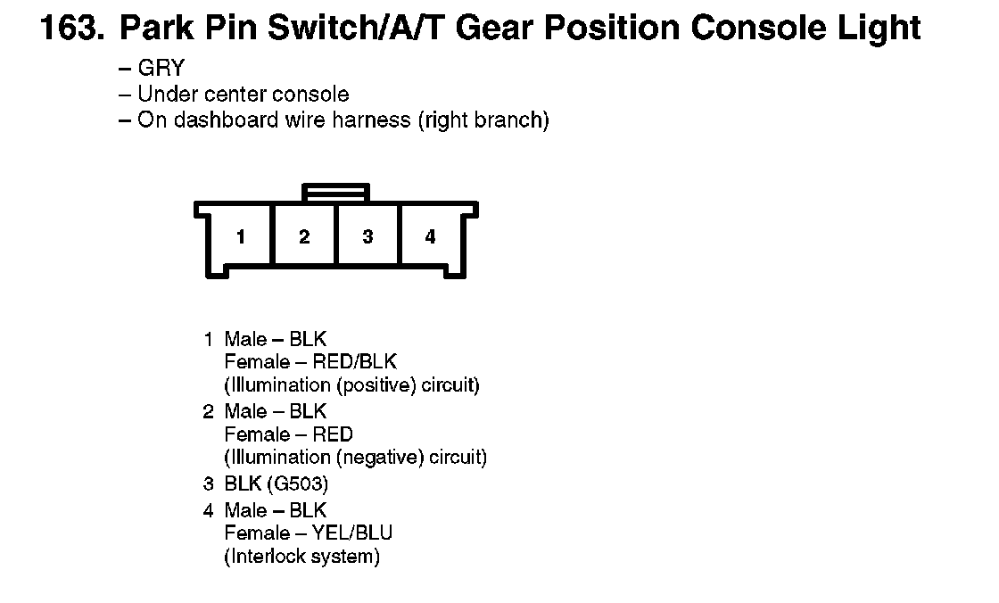 163. Park Pin Switch/A/T Gear Position Console Light: